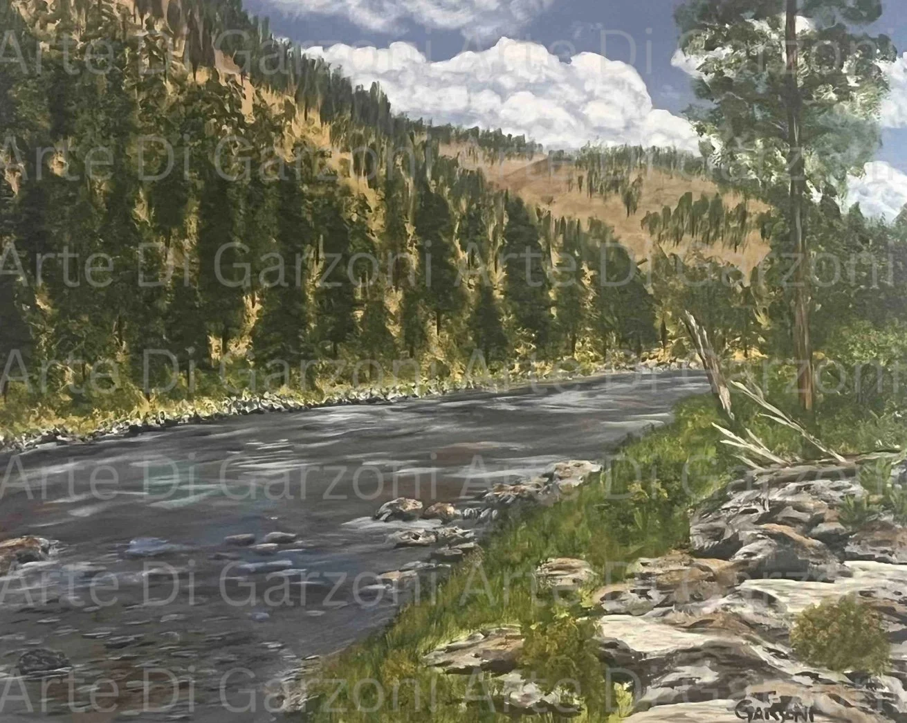 Shiefer Ranch Study. Acrylic. 20x16. South Fork of the Salmon River. SOLD