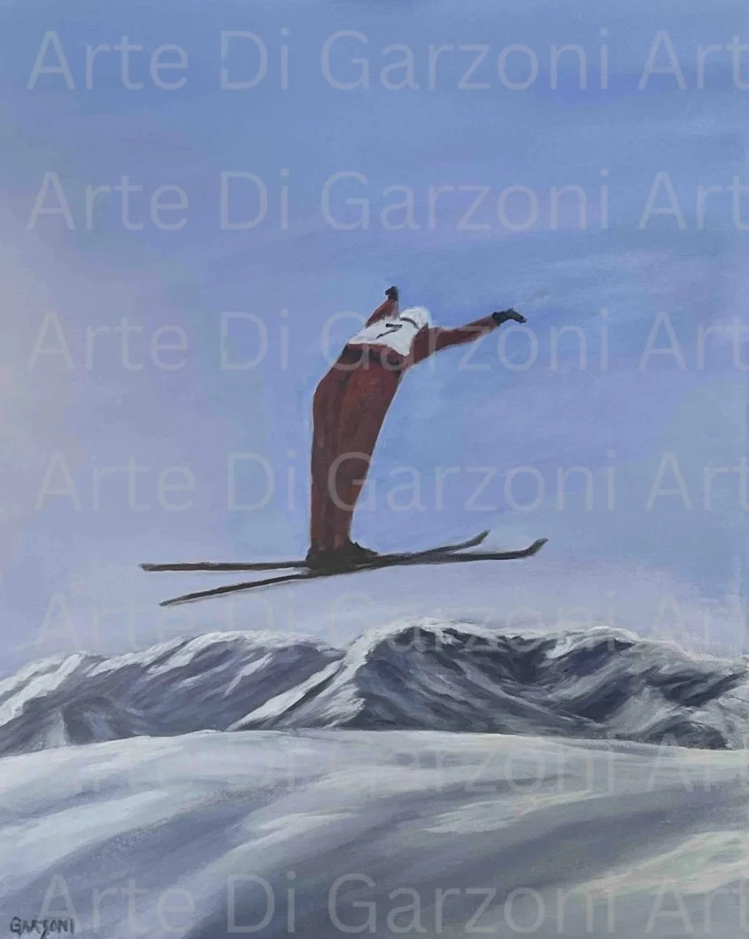 Jack Shiefer. Acrylic 16x20. Champion McCall Idaho skier, circa 1940. SOLD