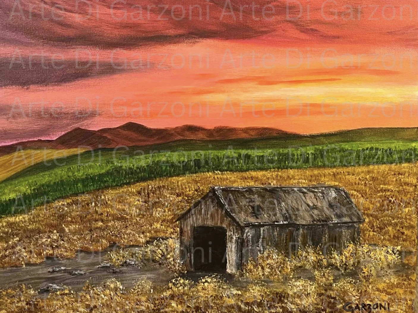 Sunset on the Palouse. Acrylic. 20X16. $499 +shipping and handling. Framed.
