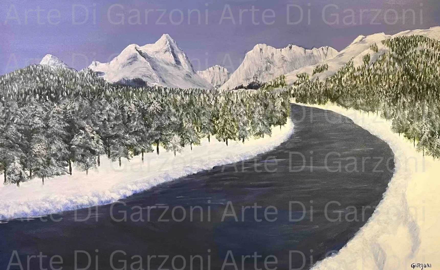 Sawtooth Mountains study. Acrylic. 28x42. Winter scene suggested by Idaho’s Sawtooth Mountains. $799 +shipping and handling.