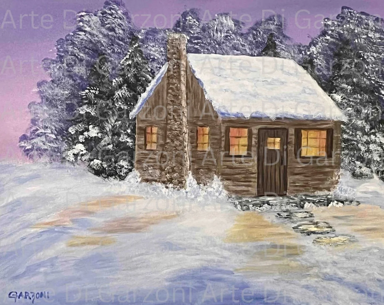 Comfy Cabin. Acrylic. 20X16. Winter study. $499 +shipping and handling. Framed.