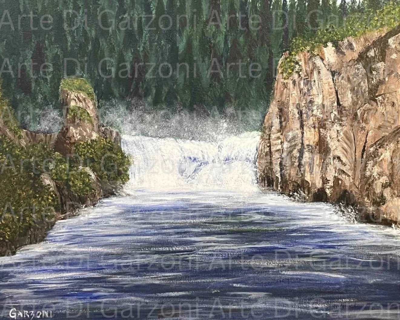 Lower Mesa Falls. Acrylic. 20X16. On Henry’s Fork of the majestic Snake River, Idaho. $499 +shipping and handling. Framed.
