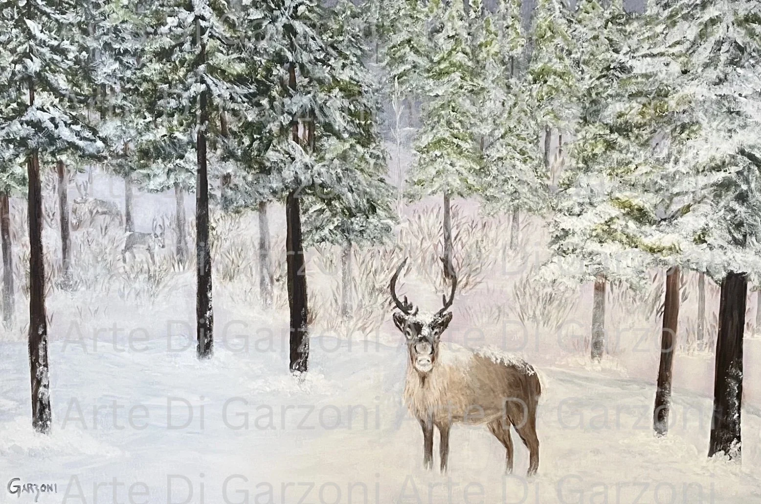Winter Chill. Acrylic. 24”X36”. First attempt at wildlife. My wife has Finnish roots, and reindeer are close to her heart.